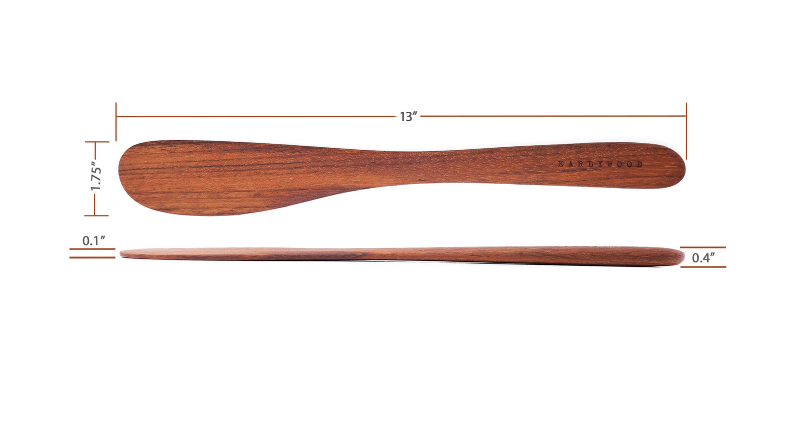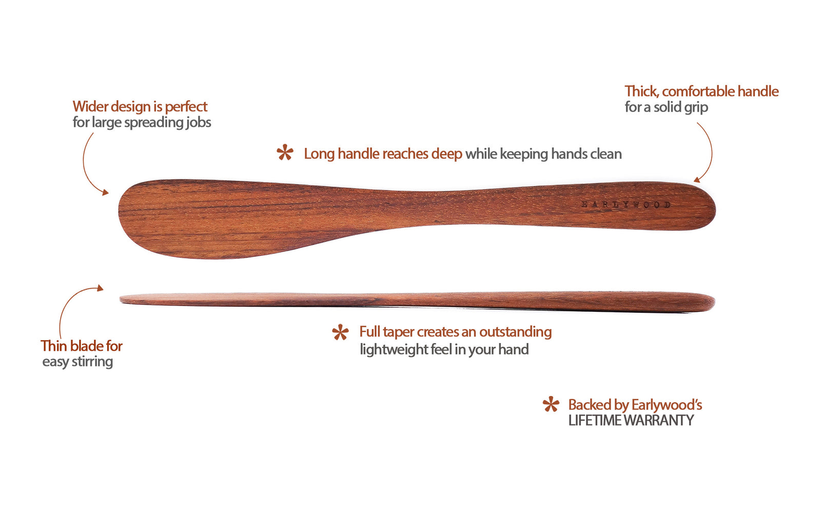 This wooden spreader is a true multitasker, it can stir, spread, scoop and it is actually pretty good at sautéing too. It will be a functional addition to your cooking collection. The wide spreading surface lets you cover the entire sandwich in one pass. The rounded handle design makes this an easy tool to get children involved in cooking as well.
