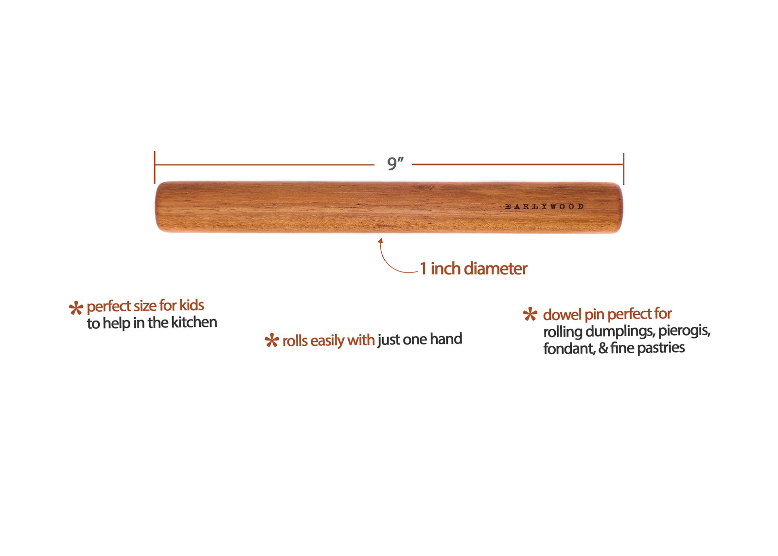 Our small wooden dumping pin is here to meet all your rolling needs. This dowel style rolling pin is much shorter and a little thinner than our French rolling pin. It's compact size makes it perfect for a wide range of tasks, including making delicious dumplings, pot stickers, pierogi, tortillas, pizzas, wontons and even fondant. This dumpling dowel is also the perfect size for getting kids involved in the kitchen too.